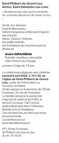 Décédé à Saint-Philbert-de-Grand-Lieu (44310, France) le mardi 5 avril 2022 à l'âge de 73 ans