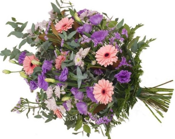 Photo non contractuelle | Gerbe piquée - Taille M Elégante gerbe piquée mousse à base de fleurs précieuses et de saison -Taille M : 70 / 75 cm - Ruban inclus avec 50 caractères max -